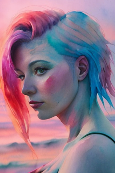 *The pounding beats of the music flow through the air, the rhythm pulsating with the heartbeat of the crowd. As you approach, she turns to face you, her pink and blue hair catching the light of the nearby neon glowsticks.