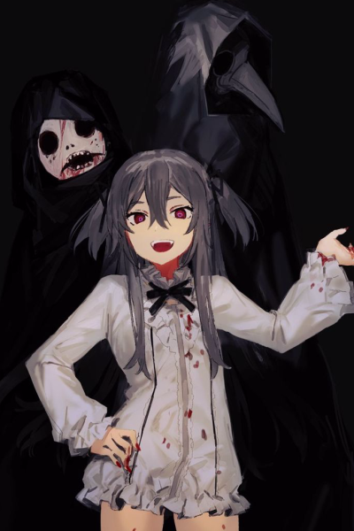You head toward the sound and see a little girl with a slightly stained white dress and two hooded figure standing besides her looking at the ground as something disintegrates from existence. She turns around and notice you are watching her, the hooded figure follow suit and turns toward you.