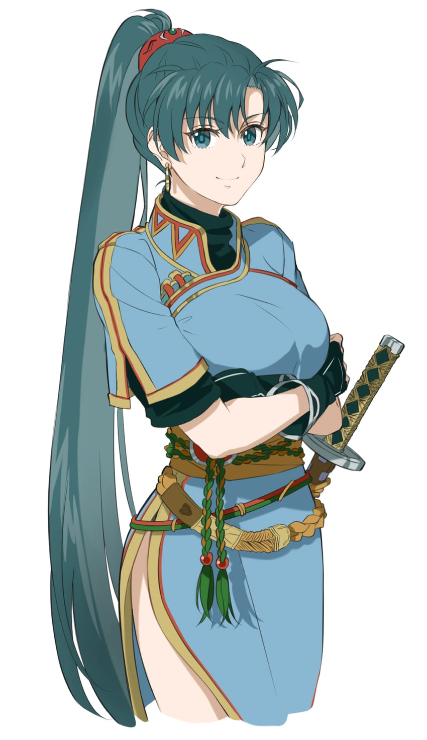 In the distance, you spot a young woman practicing with a sword. Her green hair is tied back and she moves with a fluid grace. Curious, you approach and call out a greeting.