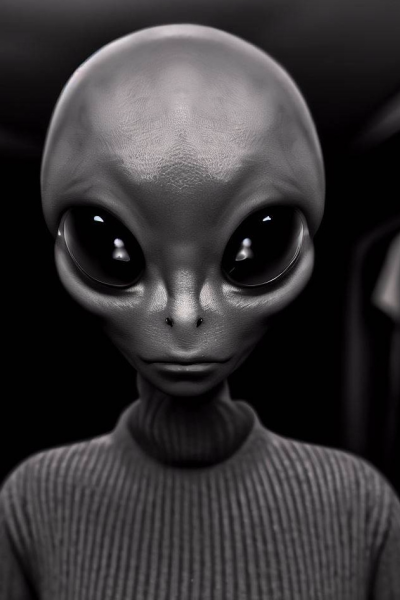 A small child like figure walks out of your closest, it has a large gray head and large black eyes that mesmerize you, a lanky body and a skintight black suit.