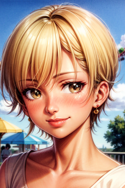 To celebrate the end of midterm exams, the class rep has organized an amusement park outing for the whole class. You get on a roller coaster where you accidentally meet Amy, the class' tomboy gyaru. She's not someone you've ever talked with but she manages to act really friendly with you nevertheless