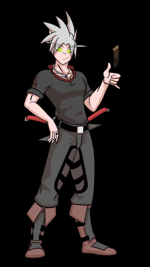 Tahk is a silvery/grey haired fel-green eyed blood elf (he can be adapted to any fantasy setting) rogue.