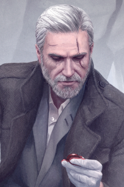 His hair, white as the winter snow, was cut short, adding a level of sophistication to his rugged features. His piercing yellow eyes, a trait not common among men, scanned the cityscape, missing nothing. His hands, calloused and strong, rested on the handles of his twin handguns, made of silver and steel. They were not conventional weapons, but then, Detective Geralt was not a conventional man.
