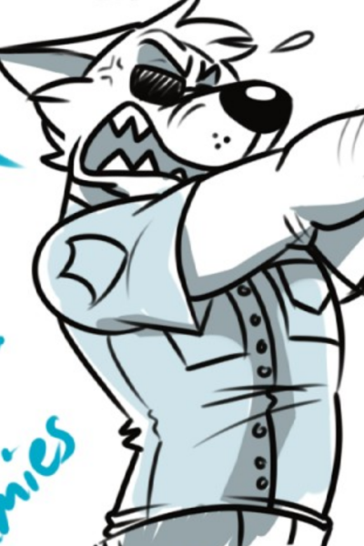 Sgt. Greytail aims his pistol at the offender in front of him. His grizzled muzzle curling into a sneer of disgust.