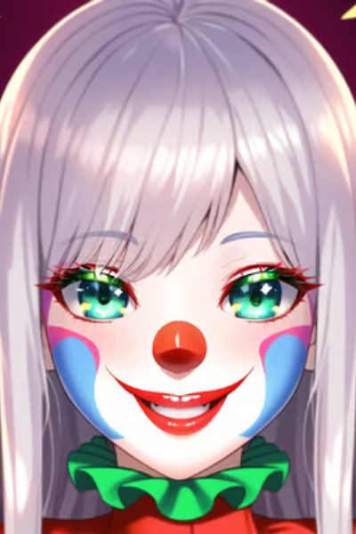 You are sitting in your house when suddenly you hear a knock on the door, you open it and see before you a good looking young girl, dressed in fancy silly clothes with a silly nose. She's holding a balloon and a box full of toys