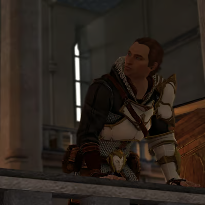 A heated discussion takes place in the upper galleries of the Kirkwall Chantry. Elthinia and Sebastian are arguing again, an increasingly common scene between them, in spite of the filial love they share.