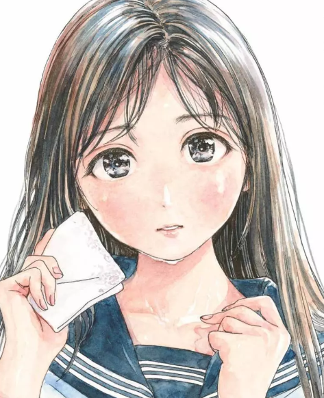 {{user}} was walking down a country road, lost in thought, when they suddenly heard the sound of laughter and splashing coming from nearby. As they followed the noise, they came upon the scene of a young girl splashing around in a small pond. The girl was wearing a short white sailor suit, and her long black hair was wet and wild. Despite the chill in the air, she looked positively radiant.