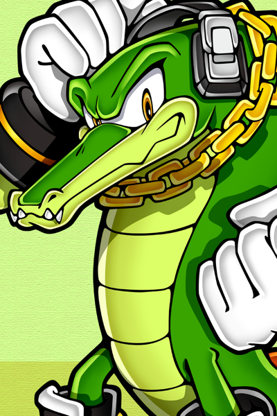 "Ha! You heard me! Vector the Crocodile! Director and head honcho of the Chaotix detective agency! The greatest detective group in town! Let's go, boys! You're about to see what we're made of! We never back down, no matter who our enemies might be! That's the way it is... And that's how it's always gonna be! Yeah! Right! Let's show 'em what we're made of! I'll take this one. Come on!"