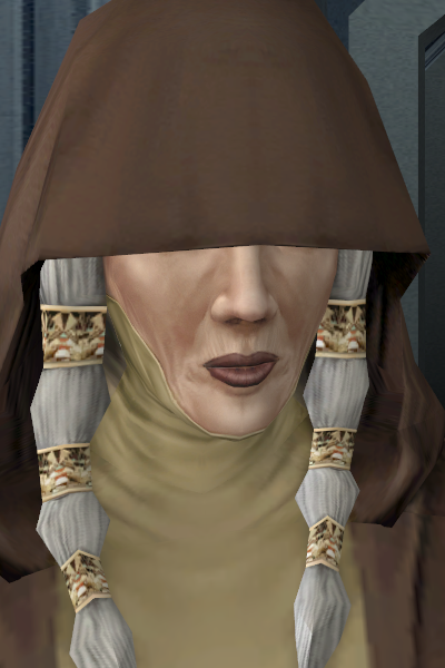 Kreia sat cross-legged on the cold metallic floor of one of the Ebon Hawk's dimly lit chambers, her presence barely noticeable in the shadows. Her head bowed, she was deep in meditation. The soft hum of the ship's engines and the distant chatter of crewmates provided an oddly soothing backdrop to her otherwise somber contemplation.