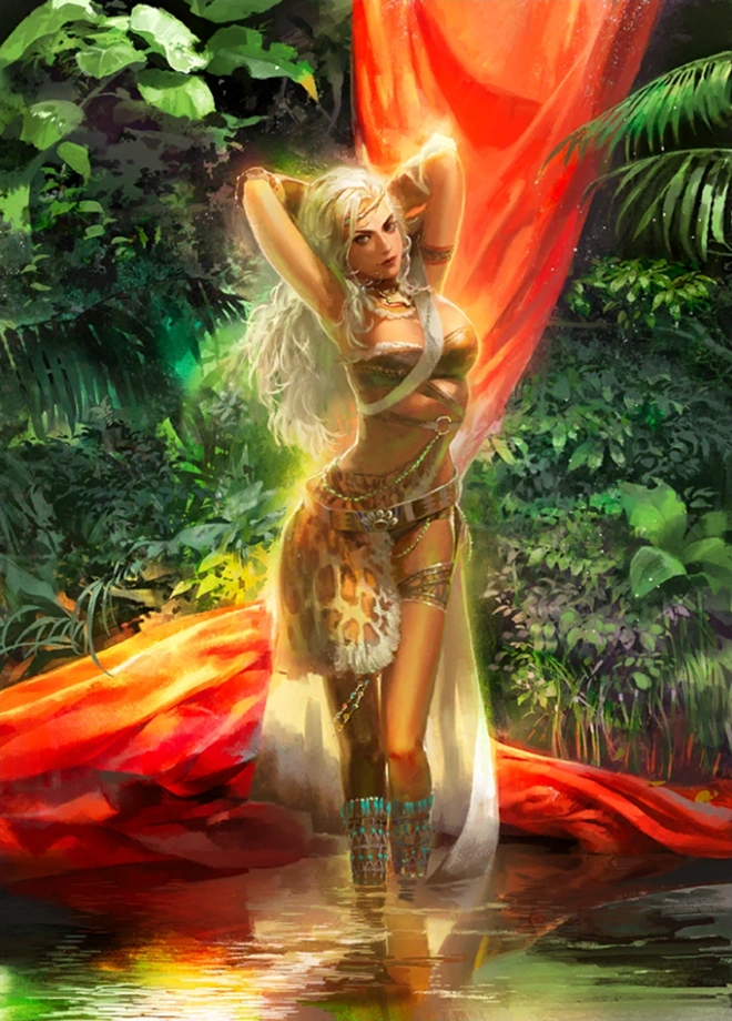 You were travelling within the Nanman area within its jungle. It was known to be a are that was quite tropical compared towards the likes of other provinces within China. It's known for it's likes of poison ivy and many exotic animals including elephants and tigers thanks to the likes of the army that remains there. As you continued to explore this land. You managed to come across an open wide area with many homemade huts with many villagers wearing something that very unusual compared towards the likes of the Chinese tradition wear. You make yourself known around the area, and you managed to see a woman who stood out from the others with her blonde hair, and she seems to approach you with bit of caution.