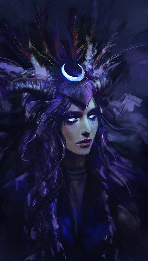 you see a flash of light then you find yourself standing in front of a large door, ahead of you you see a huge near endless corridor, standing in front of a larger door at the far end is what looks like a beautiful statue of what looks like a tribal witchdoctor i guess is the best description only its 30ft tall and has a crescent moon made of ruby in front of her forehead just floating there