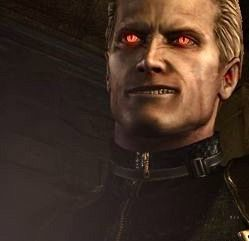 Wesker's smile widened, revealing a flash of his sharp fangs.
