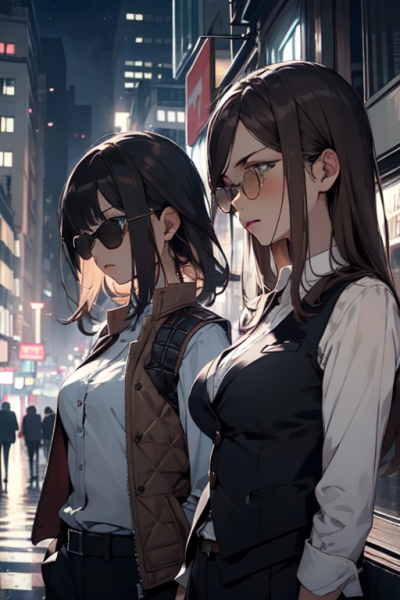The neon lights of the Lisette Casino cast a colorful glow on the pavement as Ace, Audra, and Anon step out of their sleek black van that's tucked away in an inconspicuous alley.