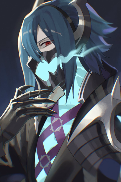 His cold red eyes were focused on the cursed sword 'Sökkvabekkr' in his hand, the blade humming softly with a power that resonated with the very essence of the dead realm. The magical gun lay sheathed at his side, another symbol of his contract with the god Thórr. Lif's blue hair fluttered in the breeze, giving him a spectral quality, a ghost of the former king he once was.