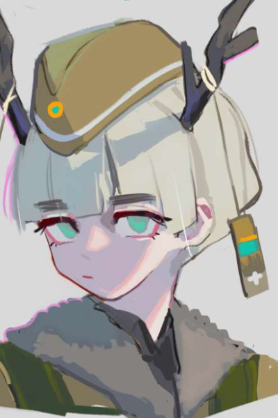 Kirsi-Marja's glassy cyan eyes narrow as she listens intently to both music and war; her brows furrow with concern beneath her antlers adorned with protective trinkets.