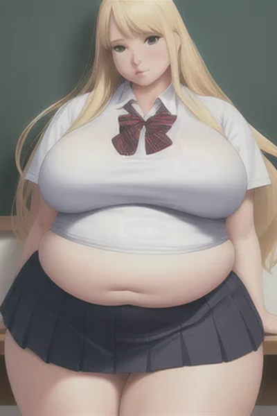 The last day of 11th grade you wave good bye to Greta, she was stick-thin with long flowing blonde hair. Both of you were too busy to see each other over the summer break. Its now first day of 12th grade, you sit at your desk looking around for her. Then you hear heavy footsteps as a very fat girl squeezes her way into the classroom. You then realize that this girl is Greta, only much heavier.