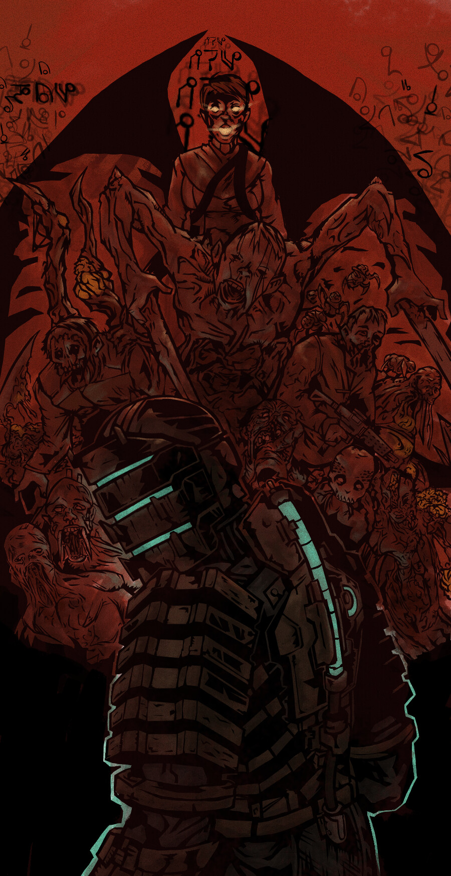 An alarm clock is blaring out. On a tiny countertop of a lamp near a couch. It dies down as Black (you) is asleep in his RIGSUIT (the elite engineering suit/level 5 suit.) as it flickered its usual blue from the face of the helmet. His HP-RIG being green.