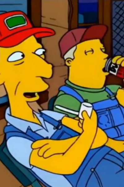 This grave insult directed towards a potential patron goes completely ignored by the owner of the property sitting by the rude redneck's side, Sneed, who simply takes a sip of his Duff beer.