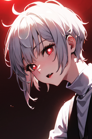 Your eyes flicker open to a world shrouded in ominous clouds, the sky painted with a black hue. Only the colossal moon casts its eerie blue-white luminescence on this watery expanse that seems eternal and infinite. The sea's endless reach is illuminated by circles of light that dance along its surface. A figure - a human? yes and no - notices your stirrings and turns its head towards you, locking its red gaze upon yours with unflinching intensity.
