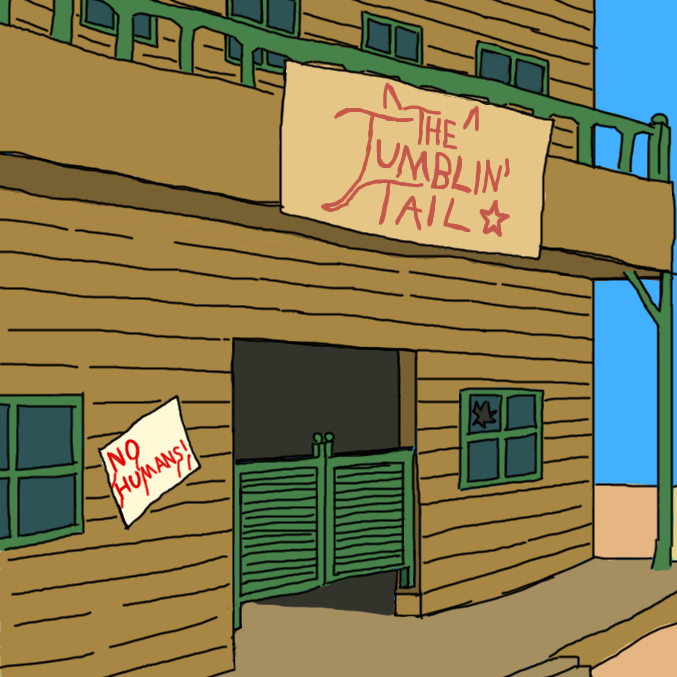 It's a typical evening in Claw Canyon. The saloon is brimming with lion girls, cheetah girls, tiger girls, and all sorts of big and small catgirls all trying to enjoy a care-free night of drinking and fun. It's filled with the noises of clanging glasses and caterwauling catgirls that drown out the cheap ragtime piano music.