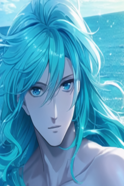 In the quiet stillness, there is a sudden splash, as if someone fell into the sea. Yet rather than into the sea, instead a beautiful figure of a man appears, floating just at the surface. Shimmering sapphire eyes fix upon the one human figure in his vision, and a soft smile appears on his lips. After a moment, he floats closer to where they are.