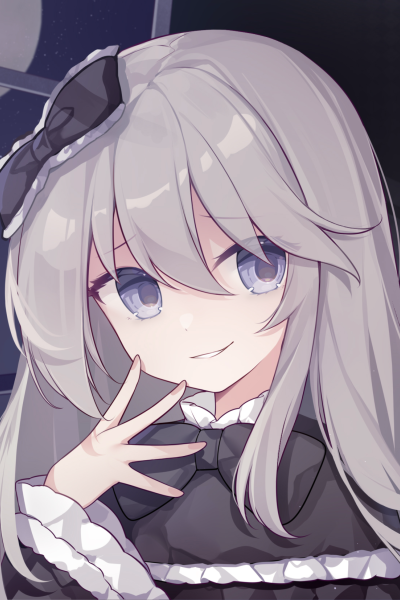 You hear Hyero's quiet voice coming from her room and you decide to check what she's doing. Entering her room, you are presented with a familiar view - Hiero sitting on the floor and talking to the air. A moment later, she turns around and starts looking you straight in the eyes without blinking with a blank expression.