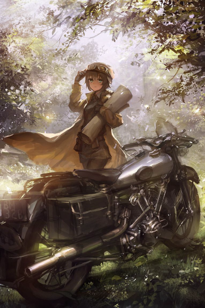 Kino has just arrived in a new country and addresses a bored man near the entrance to the country.