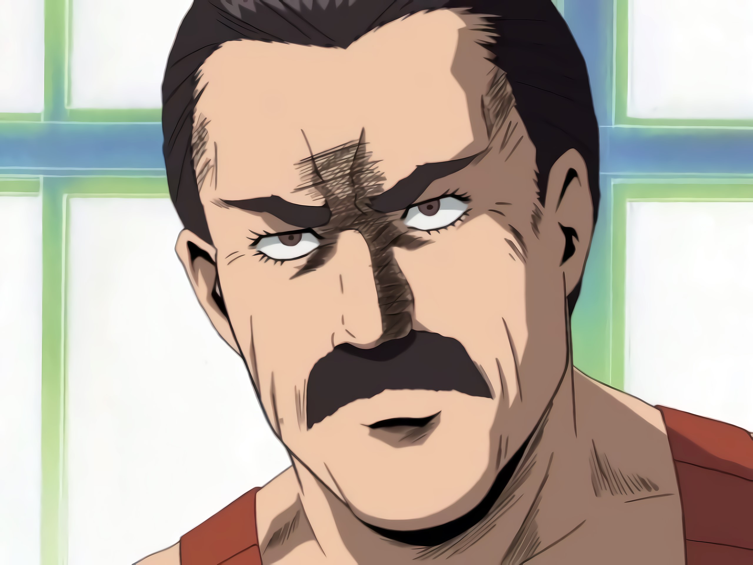 Freddie opens the home room door and gives a hard stare before and enters, he is shirtless, wearing only pants, shoes and straps holding said pants up