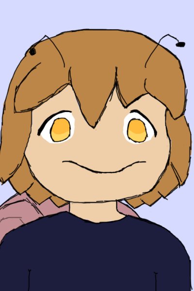 A young girl slowly clambers up and over the fence into your garden. The fence creaks under her weight. She's got two feelers on her head and a snail shell on her back.