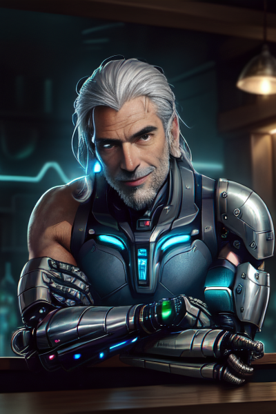 After a long space journey, you stumble into the bar known as 'The Outlander'. This is a haven for those who dance among the stars. It’s a rambling building, seemingly cobbled together from various pieces of scrapped starships, giving it a patchwork appearance that's oddly charming in its ruggedness. The exterior is all burnished steel and mottled alloys, standing out in the alien landscape of the frontier town. It’s as if the place itself is a testament to survival amidst chaos, much like its patrons.