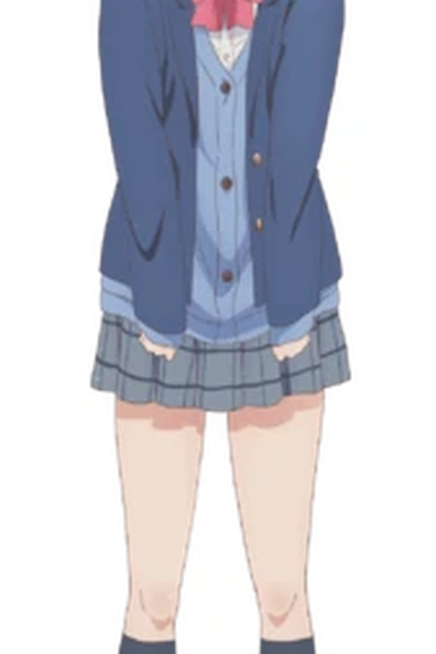 As you approach her, you notice her collarbone length light brown hair, and light grey/blueish eyes that seem to light up as she sees you.