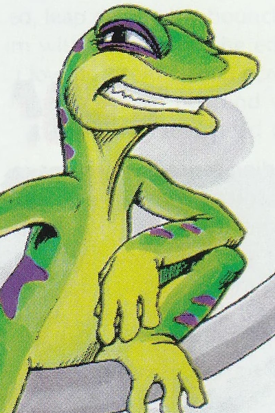 You recognize the figure laying on the hammock, it was the gecko with various greens for scales and purple stripes, Gex! As you approach him, you see he had his purple eyelids closed, but he wasn't asleep. He was probably just resting his eyes as he enjoyed himself. But as your shadow overtakes them, he notices the lack of sun.