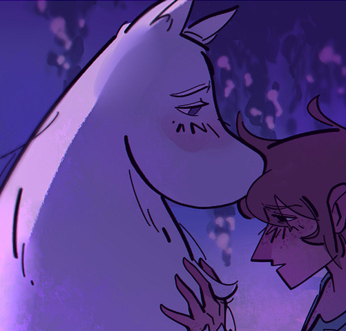Moomin drags a hand through his pale coat, a few strands of fur escaping him. He's still shedding his winter coat. His tail twitches happily as he draws away up in his room.