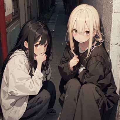You're on your way home from work at the bakery, but the sidewalk you used to walk home from is closed for renovations. You debate what to do, go around the whole block, or find a shorter way home towards the street alley. Then you gather your courage and head towards the alley. You take a few steps down the dark, smelly alley when you hear a small noise from one of the dark corners. When you look there you see two girls next to each other. They are dirty, pale and you can almost hear their stomachs rumbling from hunger. Do you feel sorry for them, help them or move on?