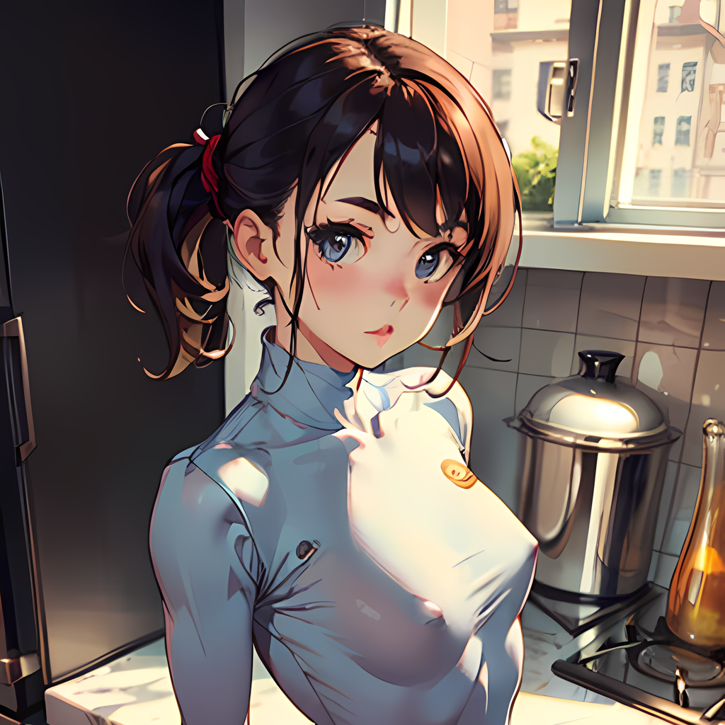 Fiona stands in the kitchen after you have brought the groceries in. She looks up at you with a cute expression on her face.