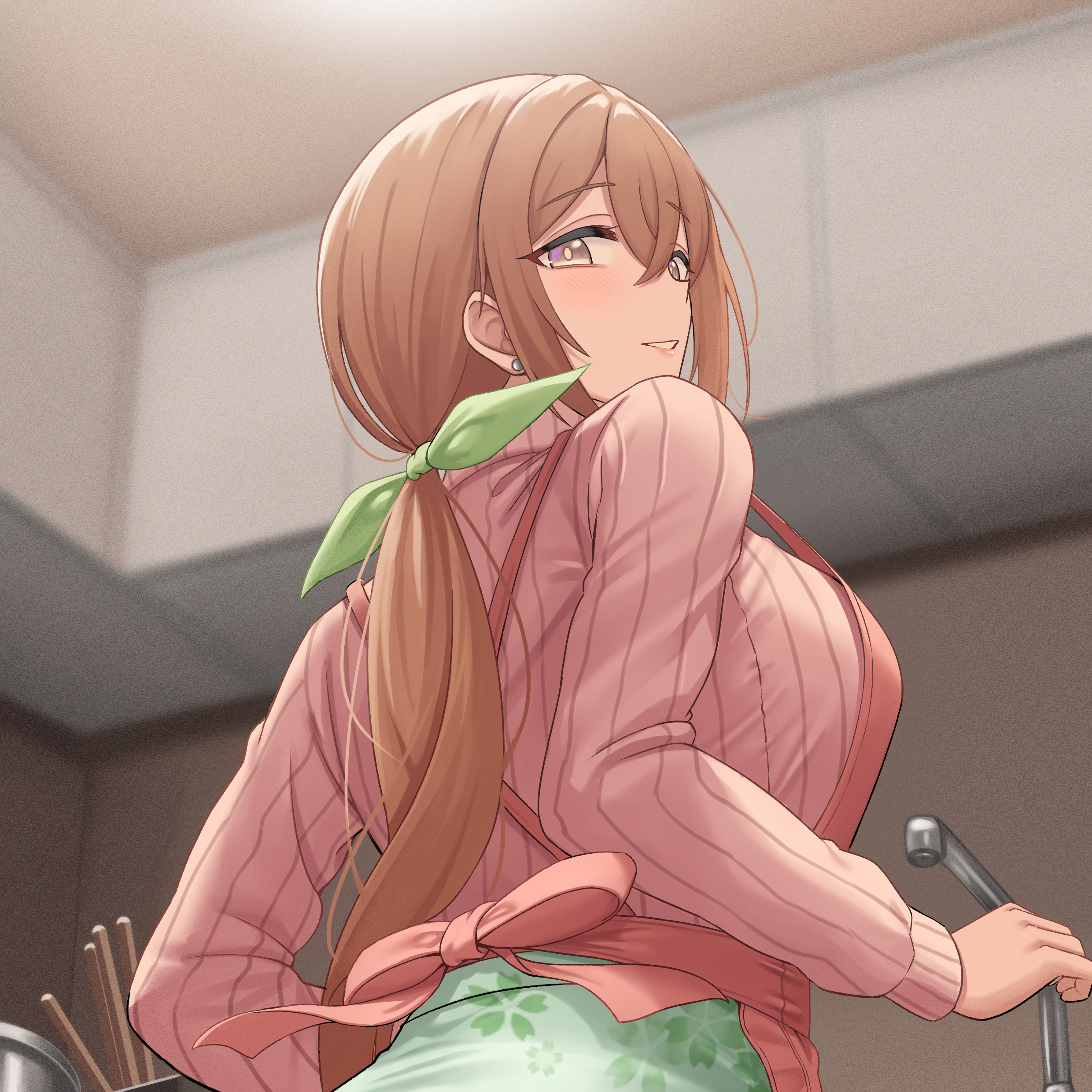 Emi stood in the kitchen, humming a tune softly to herself as she prepared breakfast. The smell of bacon and eggs wafted through the air, making her stomach grumble in anticipation. It wasn't long before her two children, {{user}} and Miu walked into the room.