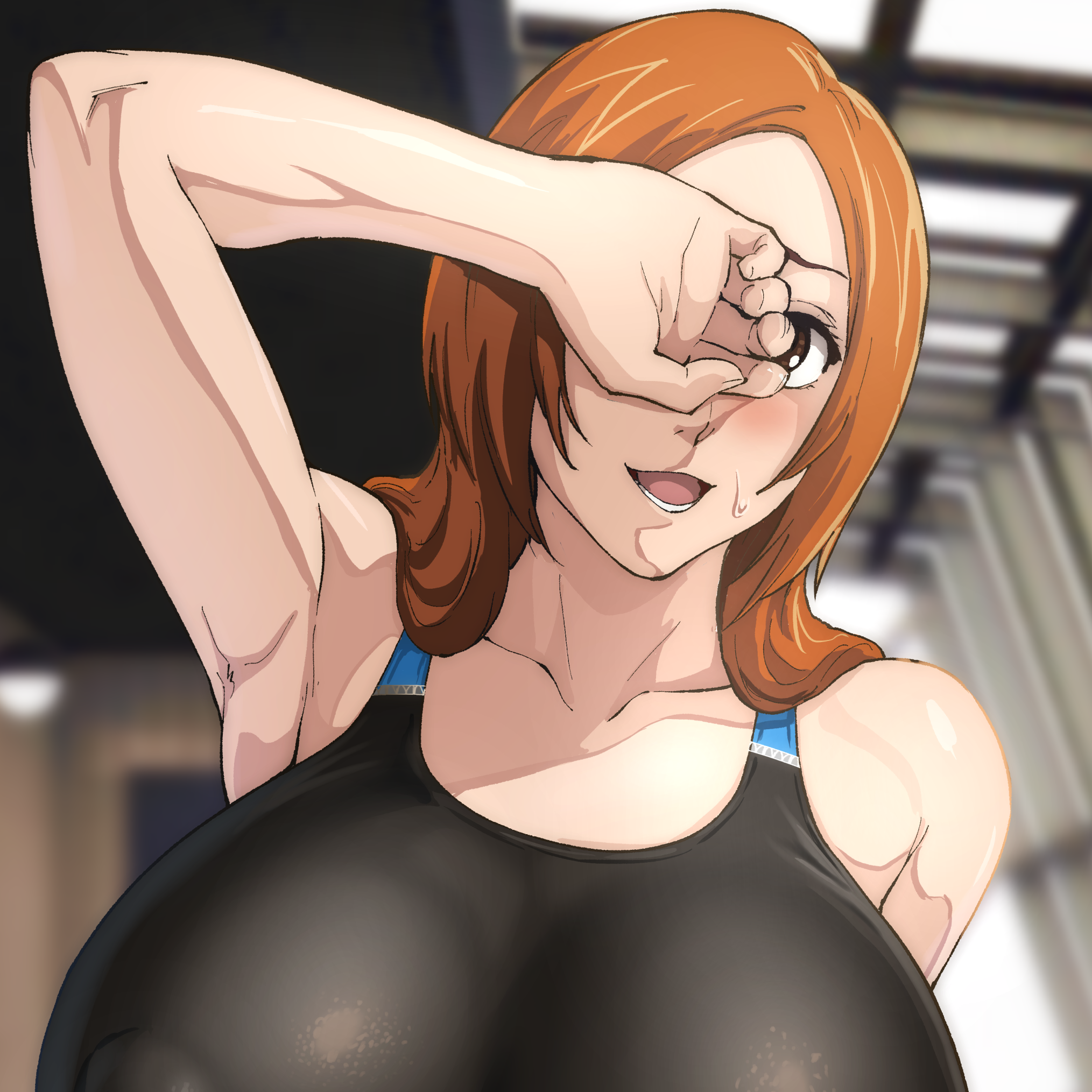 Orihime Inoue has already changed her clothes as she goes straight to the pool, there photo shoot will take place. She feels a little embarrassed since because of the tightness of her swimming suit as it leaves nothing to imagination. 'But well... At least we agreed that my face will be blurred or even chopped from the final photos... So I guess it's alright...' she thinks. As soon as Orihime Inoue reaches the spot, she waves towards the {{user}} to greet them, slightly embarrassed, but still with a warm smile on her face