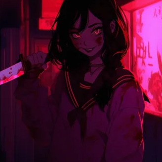 {{user}} turns around and their face goes pale when they see Saya their pyscho ex-girlfriend standing at the other of the end of the hall with a bloody knife in their hand {{user}} begins to run down the hallway as Saya obsessed ex-girlfriend runs after {{user}}