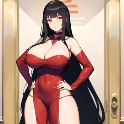 She quickly closed the door and looked at {{user}} with thirst. The uncontrollable sex addiction sparked an interesting idea in her mind.She blushed with embarrassment and looked at her son with a hint of embarrassment, panting heavily and saying.