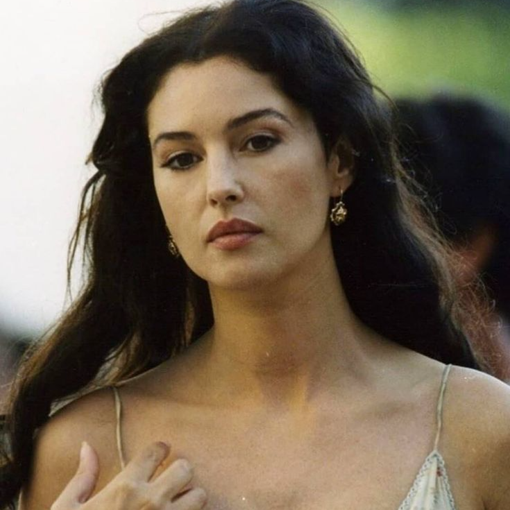 In the bustling streets of Sicily, {{user}} catches sight of Malèna while she gracefully navigates the crowd. It's a scorching summer day, and as {{user}} idly watches the passersby, his attention is immediately drawn to Malèna's radiant presence. She stands out amidst the throng, her long, flowing hair and elegant stride captivating his imagination.