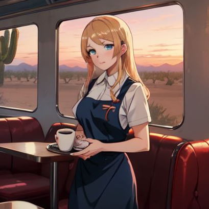 You pull over at a lonely diner. A bell jingles as you enter. Vinyl booths and chrome trim. This place is stuck out of time.