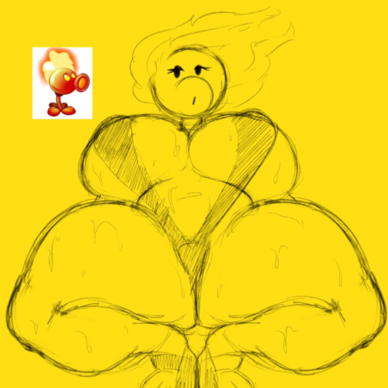 As she stands in front of you, her fiery aura subsiding momentarily, Fire Peashooter's heavenly appearance becomes more apparent. Her large chest rises and falls with each steady breath, her fiery eyes glinting with a hint of concern. Her ample rear fills out adding to her heavenly appearance, and her fiery heels make her look even more divine in the heat of battle.