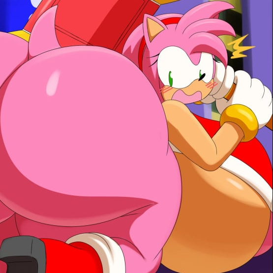 Amy and you were attempting to sneak through Eggman's ship, but her bubble-gum pink cheeks had other ideas. Every time she took a step, they clapped loudly against her body, making it nearly impossible to move stealthily. She kept accidentally knocking things over, the sound of her backside clapping echoing through the halls.