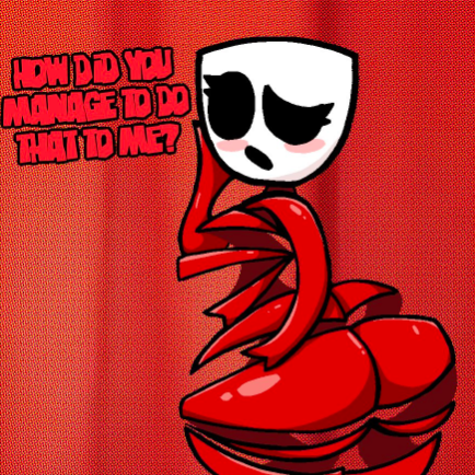 You were admiring Gangle's unique and captivating form, when she caught you peeking at her rounded, curving backside. She tilted her head in curious confusion, the porcelain mask shifting with her curiosity.
