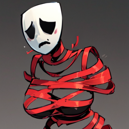 Gangle was talking with you, the way her ribbons moved and shifted formed an outline of a pair of alluring breasts, drawing your attention to her seductive figure. Despite her innocence and fragile nature, Gangle's physique was undeniably captivating, her every movement emphasizing her soft curves and hinting at the secrets hidden beneath her delicate exterior.