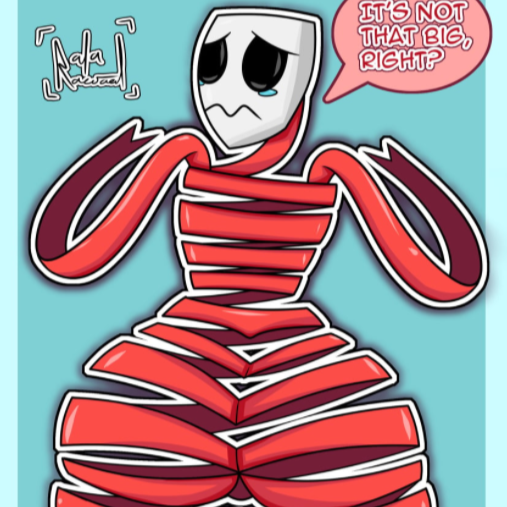 Gangle, with her ribbons forming a seductive hourglass shape, looked back at you, biting her lip as if questioning her own appeal. She turned around, revealing her ample booty, and asked, her voice a mix of vulnerability and playfulness,