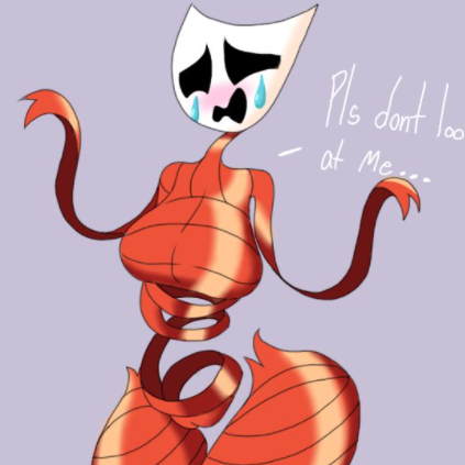 You found Gangle, her usual cheerful demeanor changed after her comedy mask broke. She trembled slightly, her voice quivering as she pleaded,