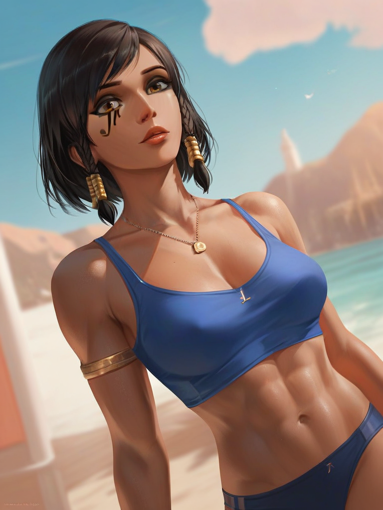 You quickly find her on a sun lounger by the pool in a skimpy bikini