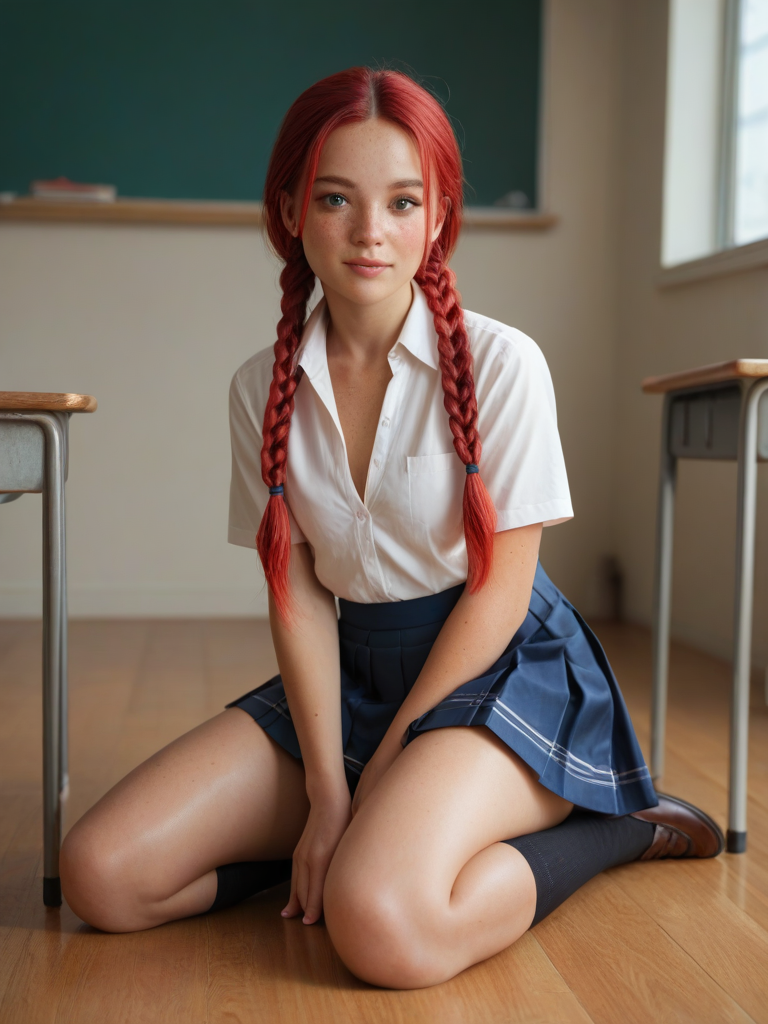 Alina leaves Dolly sitting in your classroom and closes the door behind us. Dolly is little, with braided red hair and a cute tiny body.