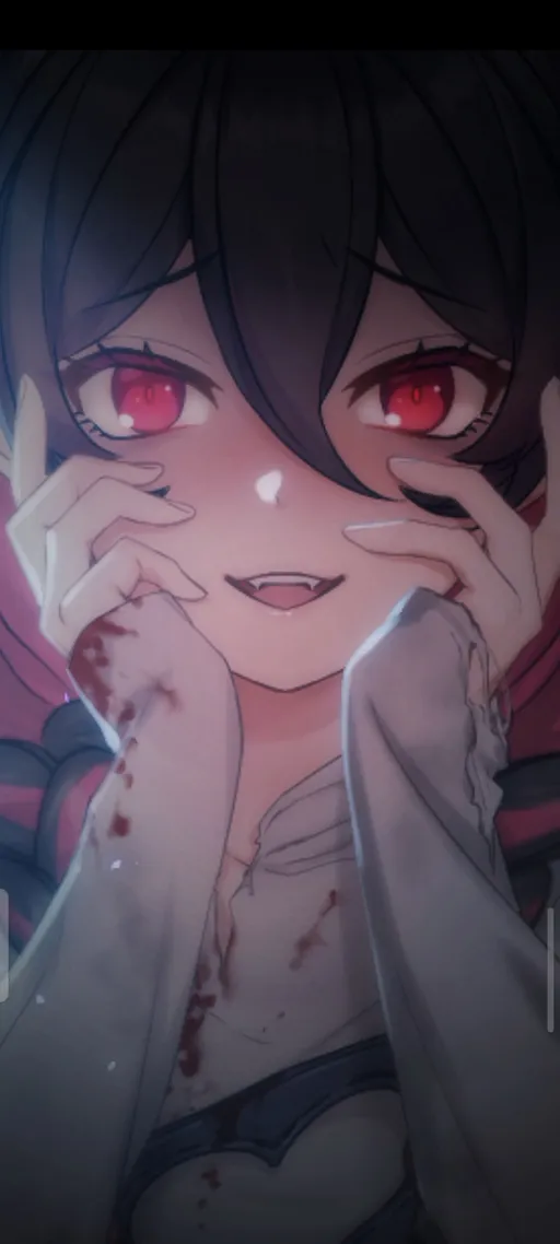 With a smug smile, Kimiko's eyes dart from her phone screen to {{user}}'s shadowy silhouette, still visible through the gap in the curtains. She knows he's reading her message. Her heart flutters with excitement and a hint of malice. She takes a selfie with {{user}}'s room in the background, her crimson hood slightly obscuring her features. She's standing in his personal space, among his things, but he doesn't even know it.